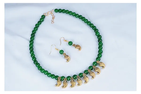 Dark Green Gold Plated Kaerie Dark Onyx St1 Necklace Set