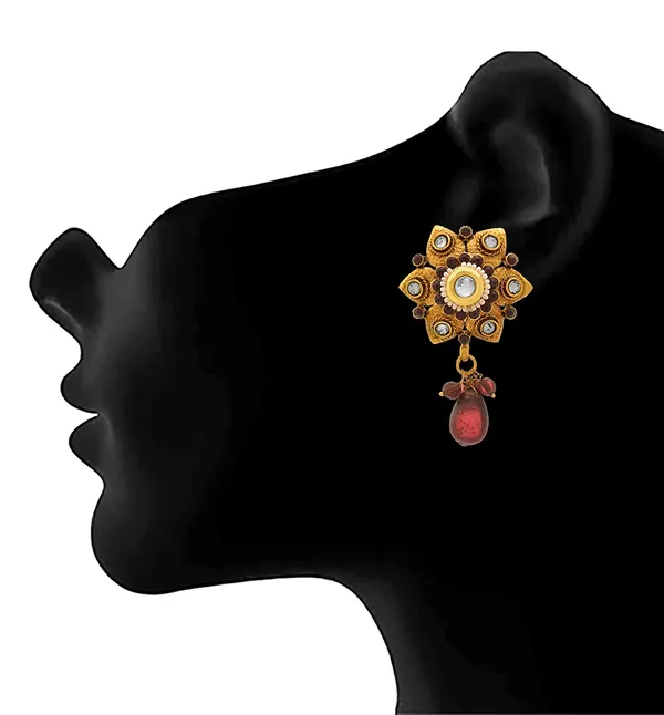 JFL -Traditional Ethnic One Gram Gold Plated Diamond & Stone With Kundan Floral Designer Earring