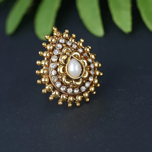 Ethnic American Diamond Studded Gold Plated Pearl Drop Shape Design Adjusta..More