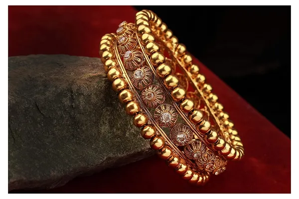 Ethnic One Gram Gold Plated Cz Diamond Designer Kada For Women And Girls