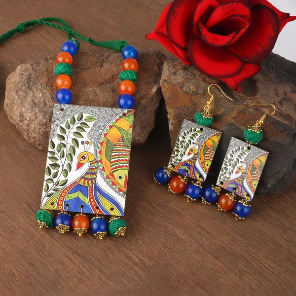 Ethnic Peacock Handcrafted Necklace Set with MultiColor Cotton Thread Bead ..More