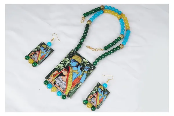 Etnic Radha Krishna Pendant with Multicolor Beaded Handcraft Necklace and D..More