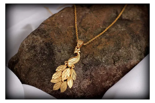Fabulous Gold Plated Peacock Design Pendant With Chain
