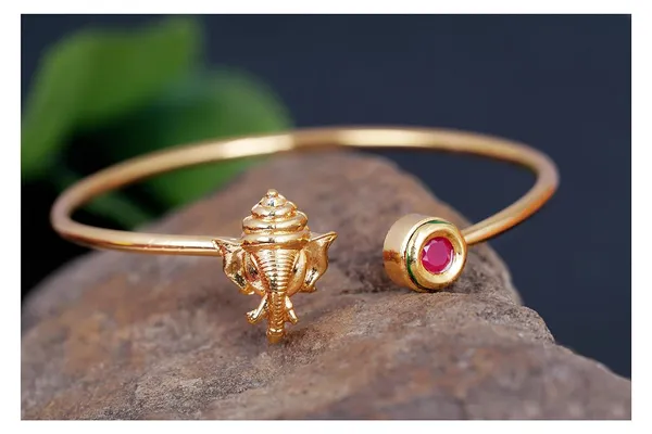 Fancy One Gram Gold Plated Glossy Ganesh Design Delicate Adjustable Kada Wi..More