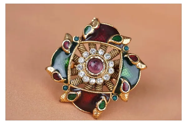 Fashion American Diamond Studded Meenakari Gold Plated Leaf Design Adjustab..More