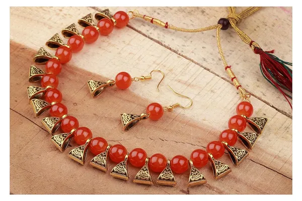 Fashion German Oxidized And Onyx Beaded 2 Necklace Set Combo With Cluster P..More