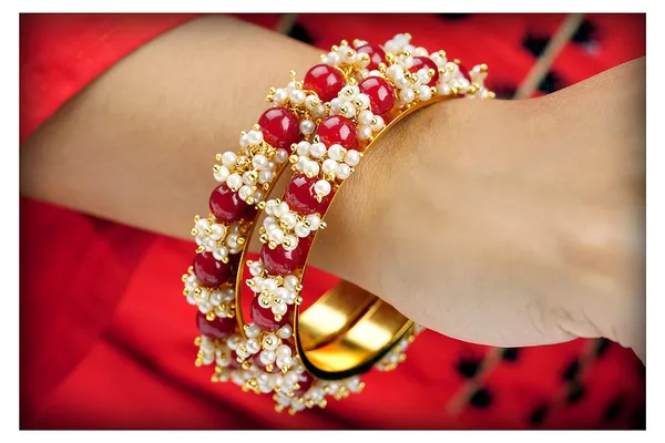 Fashion Gold Plated Cluster Pearl And Maroon Red Color Beads Latest Bangle ..More