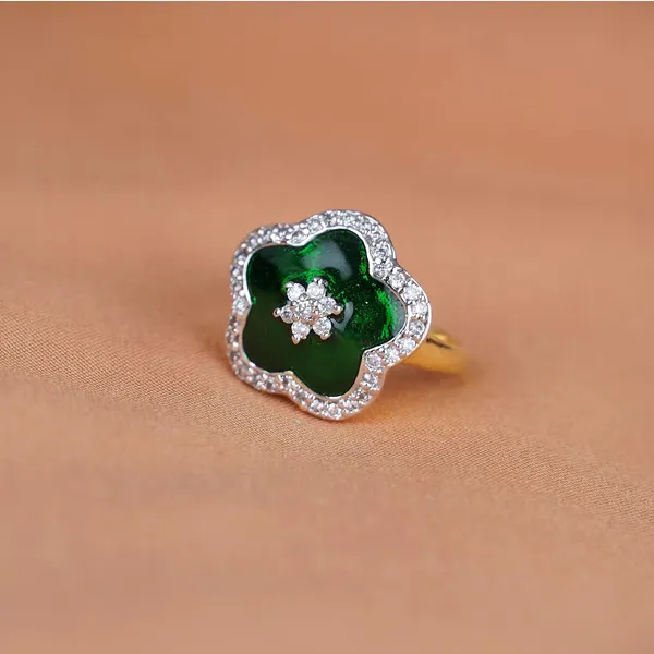 Fashion Gold Plated Floral Cz American Diamond Studded Meenakari Finger Rin..More