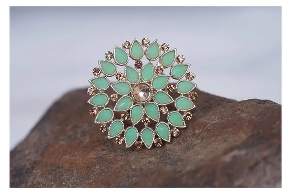 Fashion Gold Tone Floral Cz Diamond Studded Adjustable Finger Ring For Wome..More