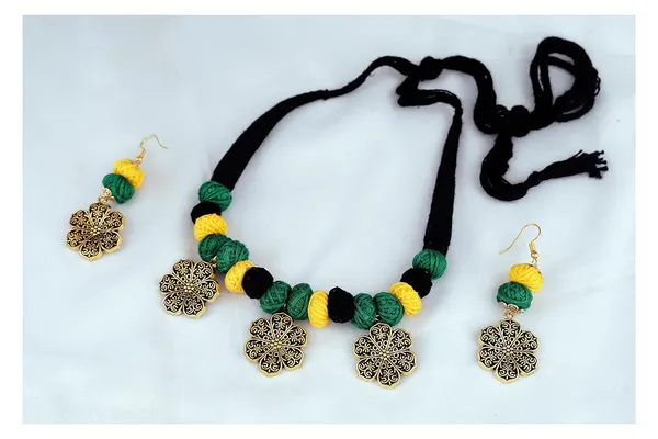 Fashion Handcrafted Gold German Silver Oxidized Beads With Red Cotton Adjus..More