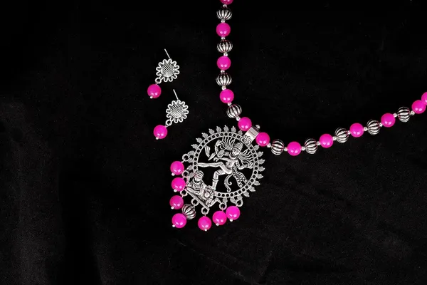 Fashion Handcrafted Silver Oxidized Shiva Nataraja Black Onyx Beaded Neckla..More