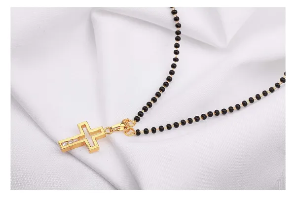 Fashion Mangalsutra Gold Plated Cross Pendant With Black Beaded Golden Chai..More