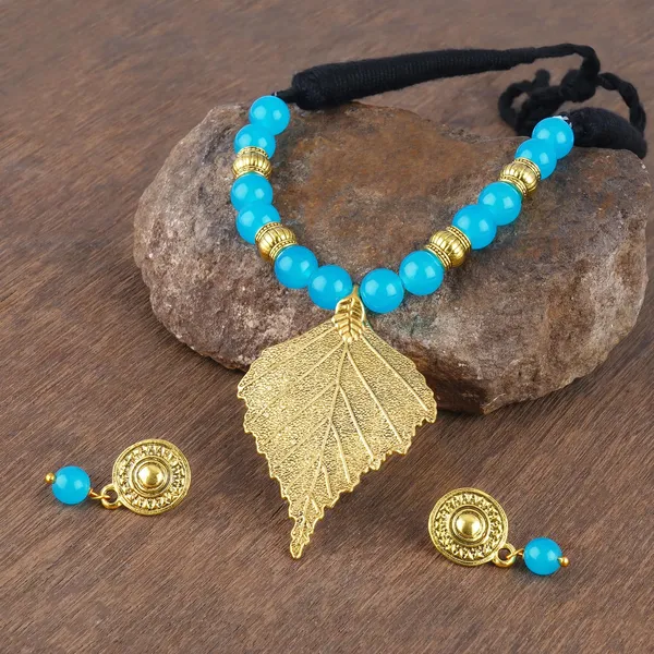 Fashionable Gold Plated Leaf Pendant Beaded Necklaces Set With Cotton Adjus..More