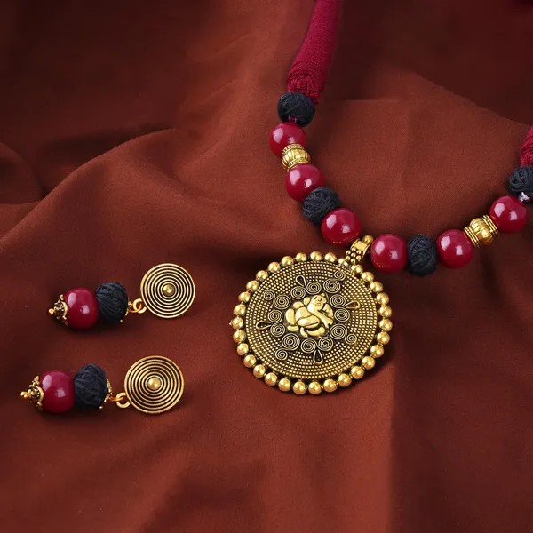 Fashionable Gold Plated Oxidized German Ganesha Beaded Necklaces Set With C..More