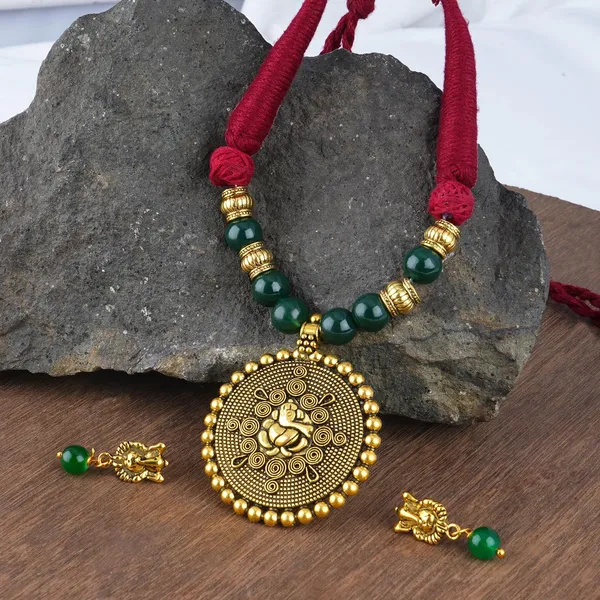 Fashionable Gold Plated Oxidized German Ganesha Beaded Necklaces Set With C..More