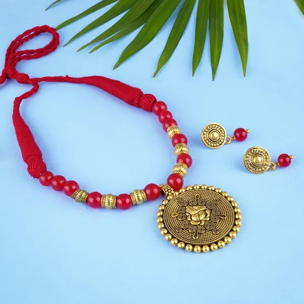 Fashionable Gold Plated Oxidized German Ganesha Beaded Necklaces Set With C..More