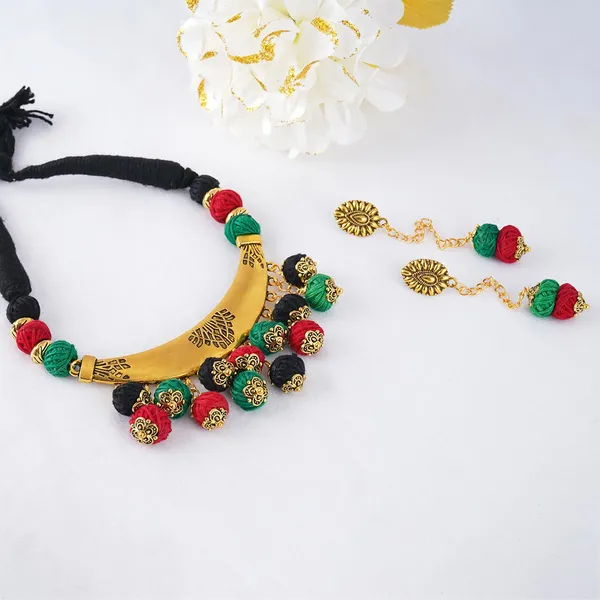 Fashionable Gold Plated Oxidized German Half Moon Shape Pendant Cotton Ball..More