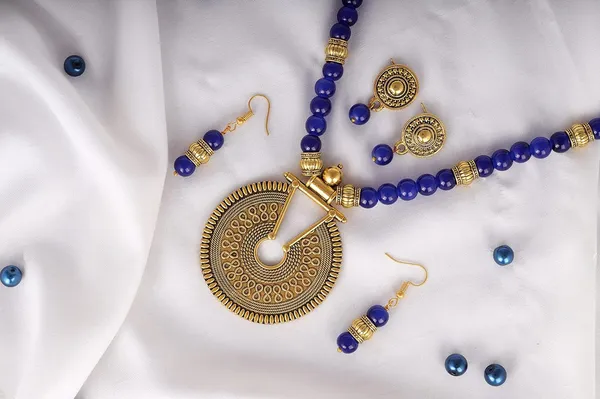 Fashionable Gold Plated Oxidized German Keyhole Beaded Necklace With 2 Pair..More