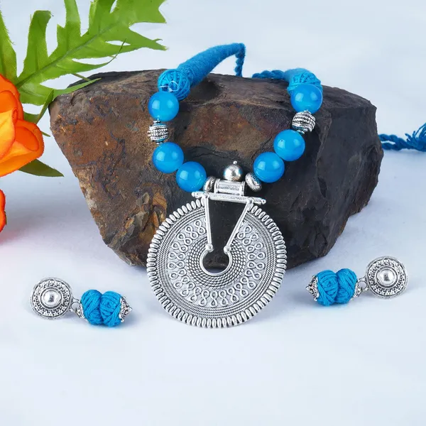Fashionable Oxidized German Silver Keyhole Beaded Necklace Set With Cotton ..More
