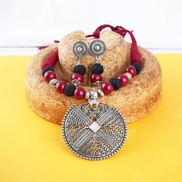 Fashionable Silver Plated Oxidized German Beaded Necklaces Set With Adjusta..More