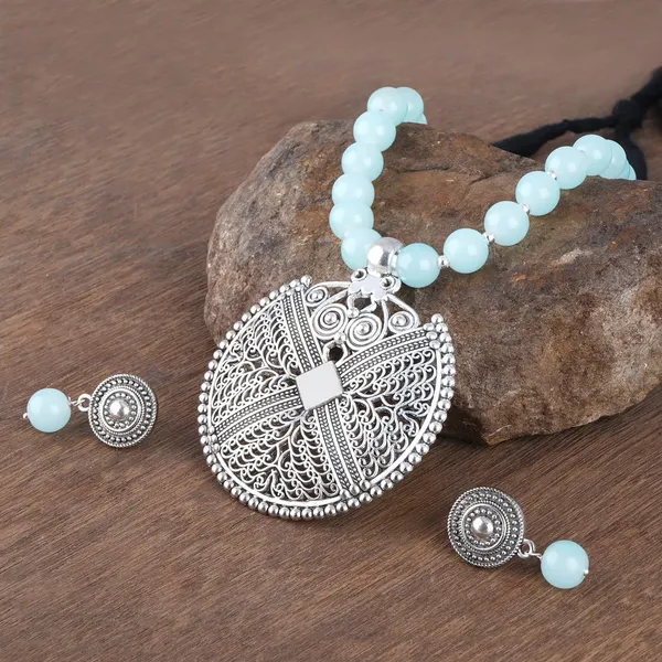 Fashionable Silver Plated Oxidized German Beaded Necklaces Set With Adjusta..More