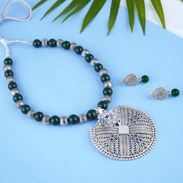 Fashionable Silver Plated Oxidized German Silver Beaded Necklaces Set With ..More