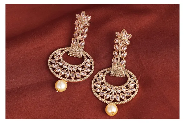Floral Gold T1 And Polki St1 With Pearl Drop Fancy Earring/Girls