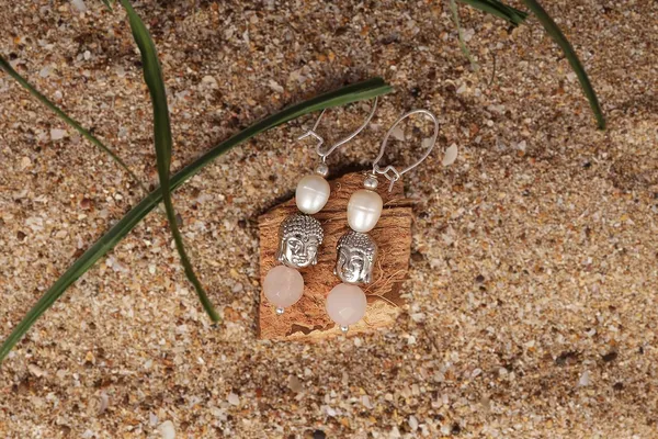 German Silver Plated Oxidised Buddha Semi Precious Pearl And Agate Bead Des..More