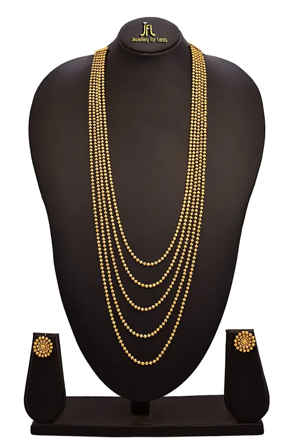 Gold 1 Gm Gold Plated Bead Long Necklace Set With Earrings
