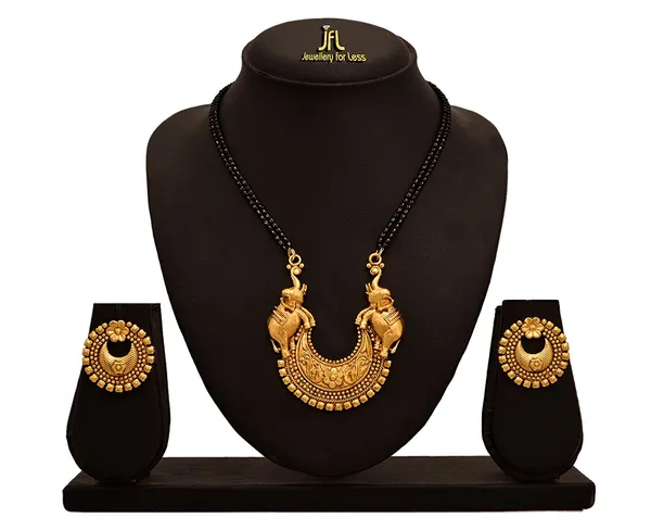 JFL -Traditional Ethnic One Gram Gold Plated Elephant Designer Mangalsutra with Double Black Beaded Chain