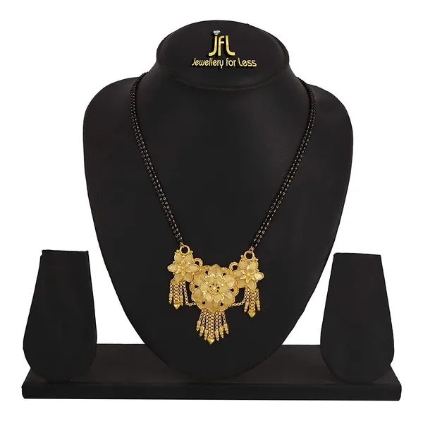 Gold 1 Gm Gold Plated Floral Mangalsutra With Double Black Beaded Chain