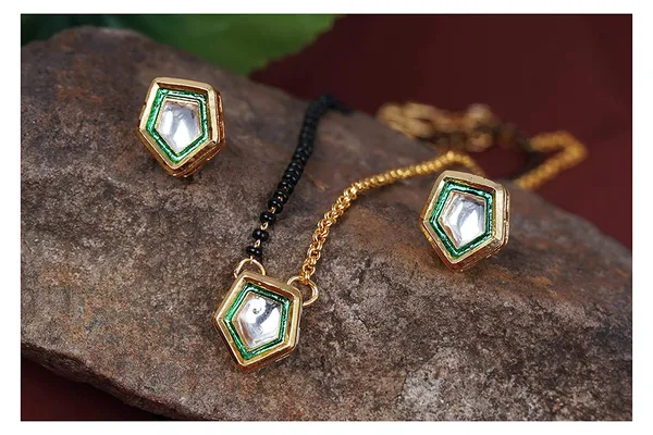 Gold 1 Gm Gold Plated Pentagon Kundan Pendant 1 Side Chain Mangalsutra With..More