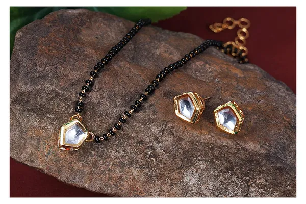 Gold 1 Gm Gold Plated Pentagon Kundan Pendant Mangalsutra With Kundan Stud ..More
