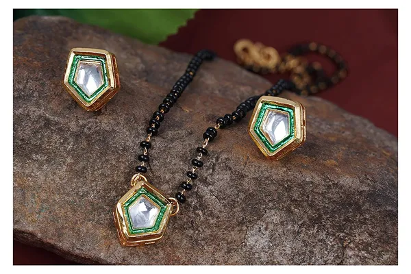 Gold 1 Gm Gold Plated Pentagon Kundan Pendant Mangalsutra With Kundan Stud ..More