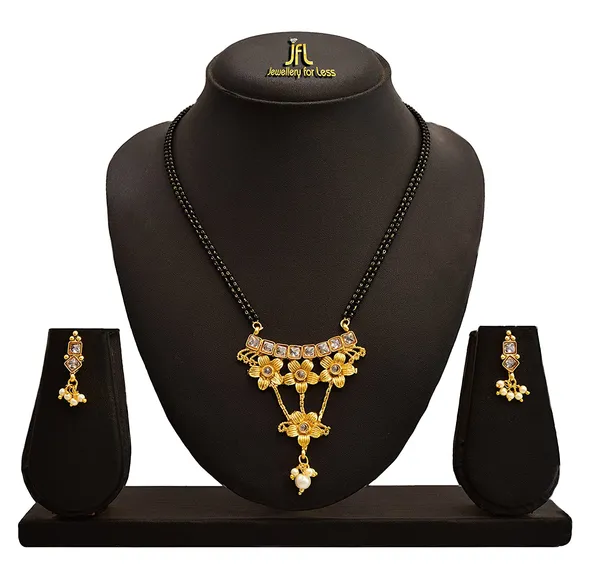 Gold 1 Gm Gold Plated Polki Diamond & Pearl Mangalsutra Set With Black Bead..More