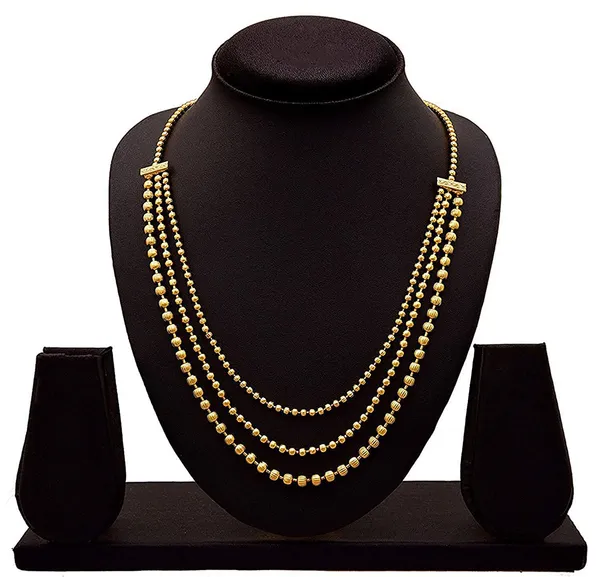 Gold 3 Layer Necklace Royal Gold Plated 3 Layer Gold Bead Necklace With Adj..More
