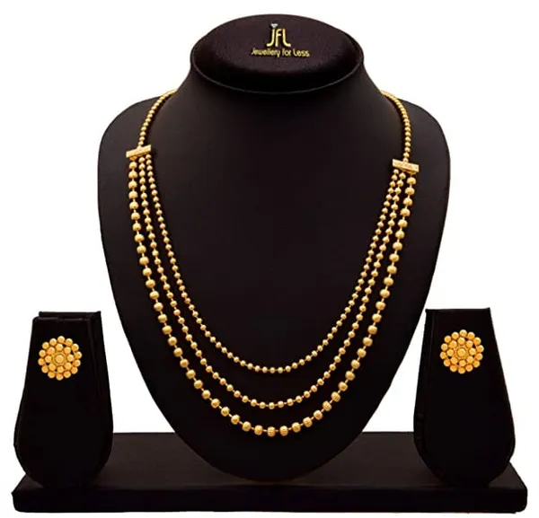 Gold And 1 Gm Gold Plated Multi Layer Round Gold Bead With Bead Earring Nec..More