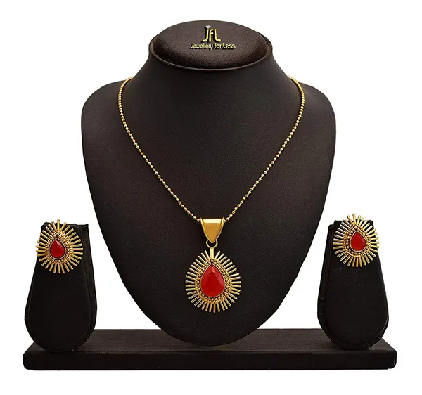 Gold Beautiful Glossy St1S Pendant With Chain & Earring Sets