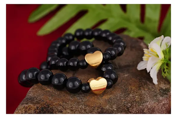 Gold Combo Of Black St1 With 1 Gm Gold Plated Heart Handmade Stretchable Br..More