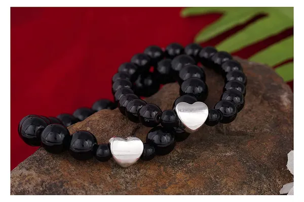 Gold Combo Of Black St1 With Silver Plated Heart Handmade Stretchable Brace..More