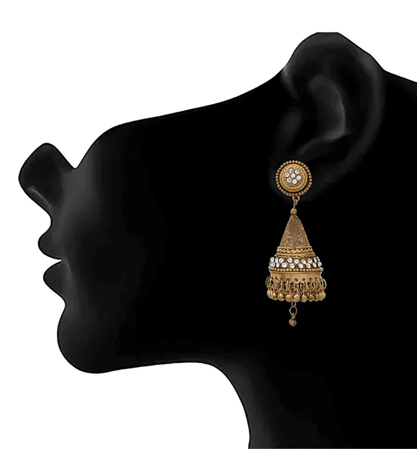 JFL -Traditional Ethnic One Gram Gold Plated Exquisite Crafted Jali Cone shape jhumka Earring with Diamond Earrings & Girls
