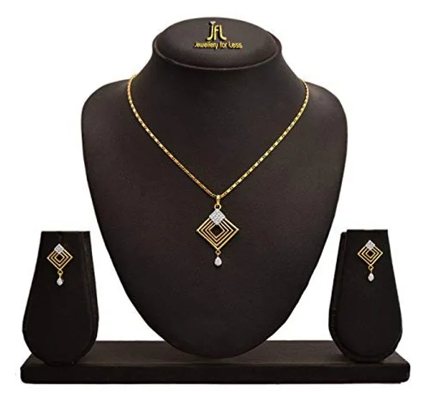 Gold Fusion Western 1 Gm Gold Plated Cz American Diamond Pendant Set