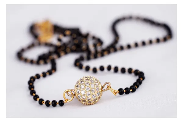 Gold Gold Plated American Diamond Studded Single Ball Pendant Short Chain M..More