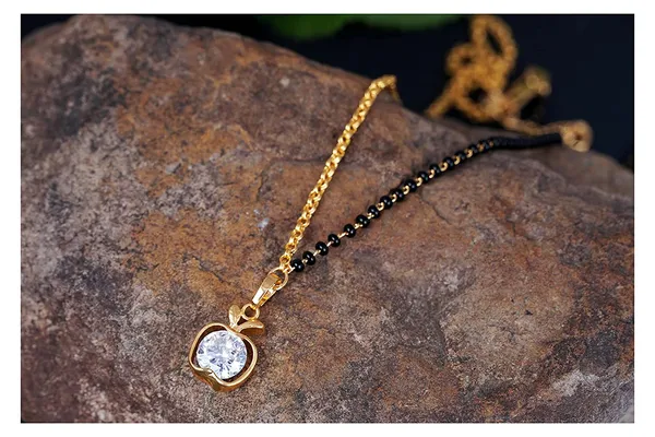 Gold Gold Plated Cz American Diamond Apple Shape Pendant And 1 Side Chain M..More