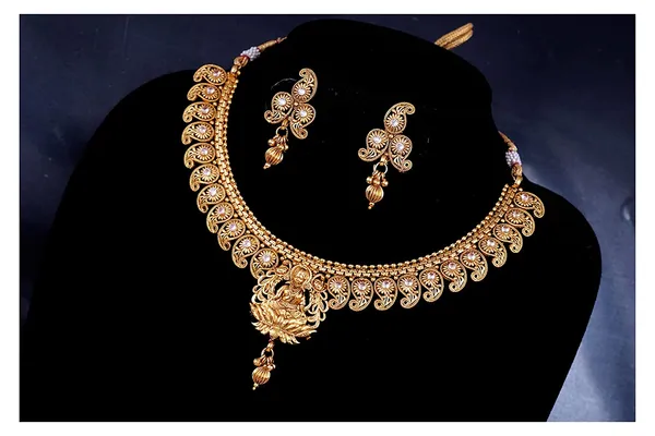 Gold Gold Plated Cz American Diamond Studded Laxmi And Peacock Design Neckl..More