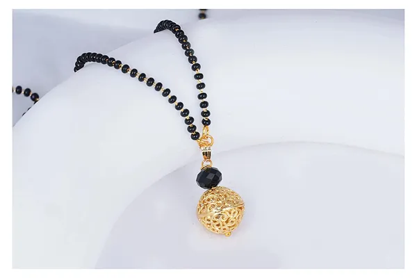 Gold Gold Plated Dangle Jali Ball With Black Beaded Mangalsutra