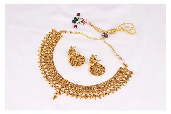 Gold Gold Plated Drop Shape And Spiral Design Fancy Necklace Set With Adjus..More