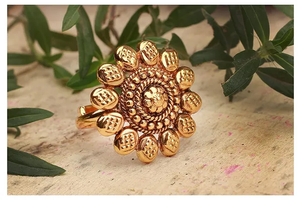 Gold Gold Plated Floral Design Adjustable Finger Ring