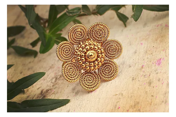 Gold Gold Plated Floral Spiral Design Adjustable Finger Ring