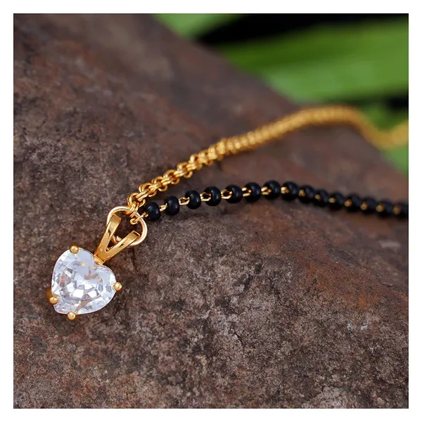 Gold Gold Plated Heart Shape Cz American Diamond Pendant And 1 Side Chain M..More